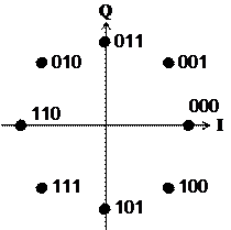 Symbols are transmitted at 1 Mbaud, with three bits per symbol, giving a raw data rate of 3 MBit/sec.