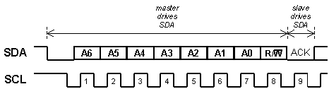 The first byte transmitted by the master contains the 7-bit address of the slave to be accessed: